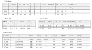 제품정보, 재고정보, 입고정보, 출고정보, 보충 또는 분류 정보 등 시뮬레이션에 필요한 데이터를 정리합니다.