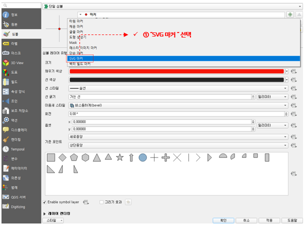 여기서 "SVG 마커"를 찾아서 선택해 줍니다.