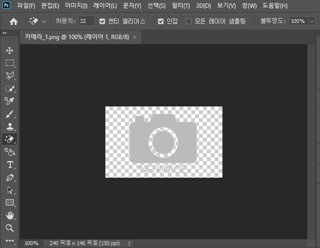 4) 아래와 같이 회색부분이 투명하게 바뀐것을 확인할 수 있습니다.